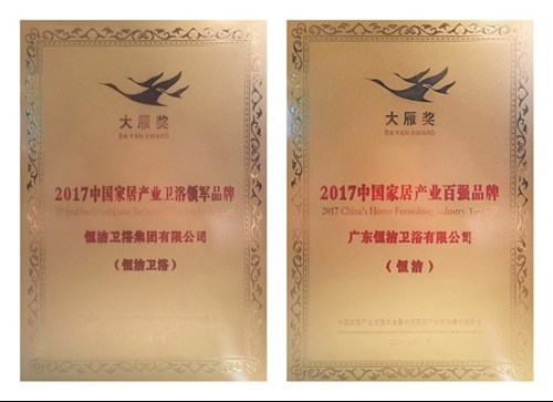 1月6日,由12大行业协会共同举办的第五届中国家居产业发展年会暨2017年度中国家居产业大雁奖颁奖盛典在北京国家会议中心举行,91视频破解版不负众望,再次获得「大雁奖·2017中国家居产业卫浴领军品牌」、「大雁奖·2017中国家居产业百强品牌」。